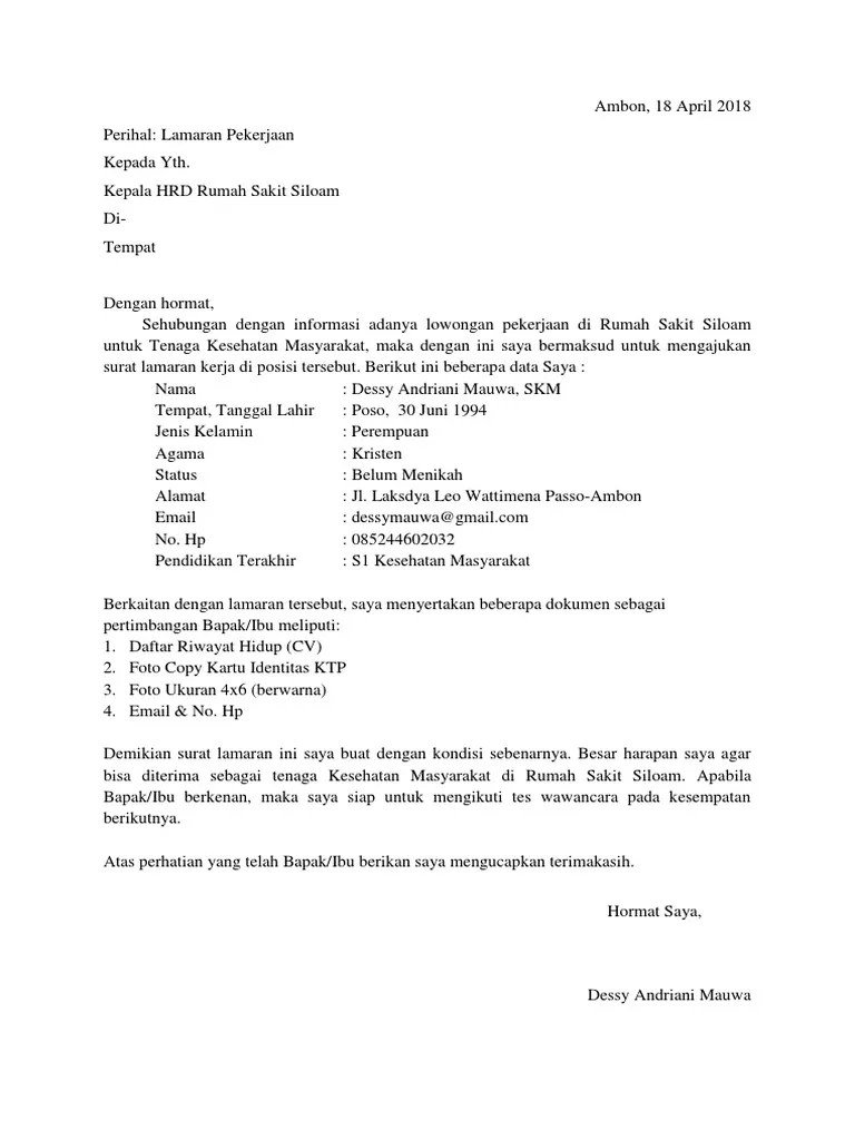 Contoh surat lamaran kerja rumah sakit siloam & sardjito.
